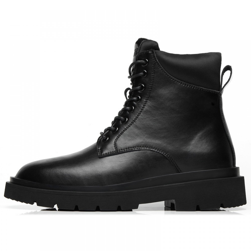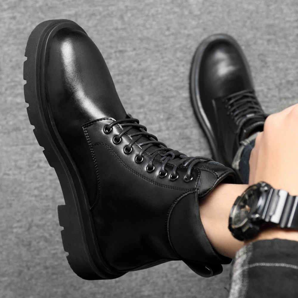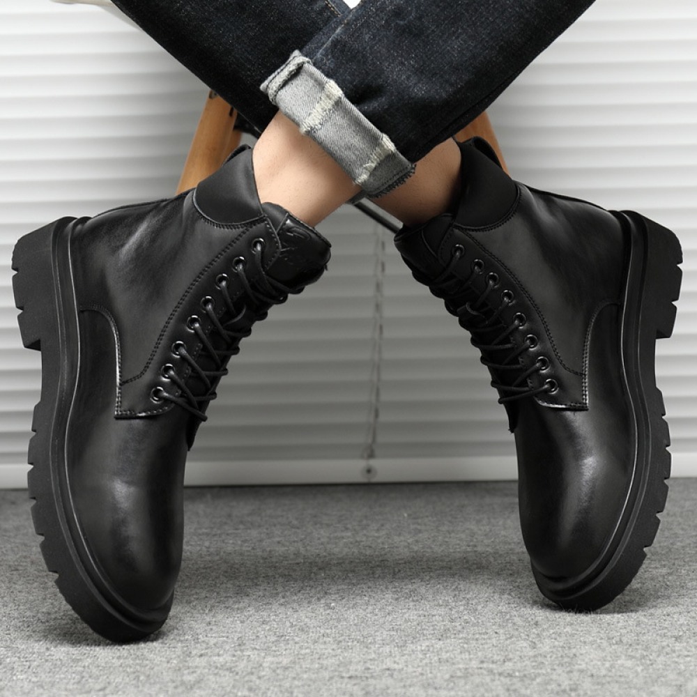 Fall Men's Round Toe Fashion Casual Mens Leather Boots Trend Front Lace-Up Wear-Resistant Low-Heel Martin Boots