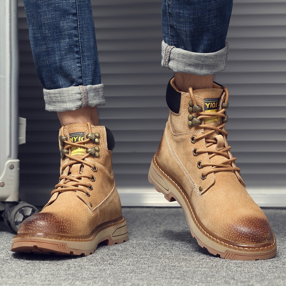 Martin Boots Men's Autumn New Leather Boots Casual Mid-Cut Tooling Boots High-Top Mens Shoes