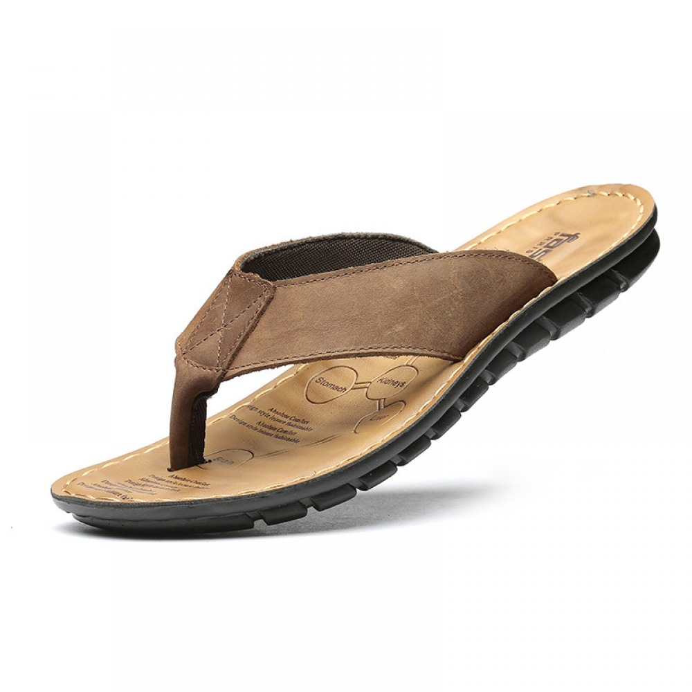 New Men's Flip-Flops Summer Beach Shoes Non-Slip Sandals Trend Leather Massage Sandals Men